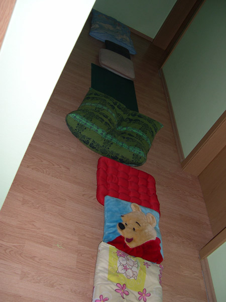Padarykite iš visų turimų pagalvėlių kelią, kuris metinukui (net ir turinčiam kelių mėnesių vaikščiojimo patirtį) ne taip lengvai bus įveikiamas, neprarandant pusiausvyros.