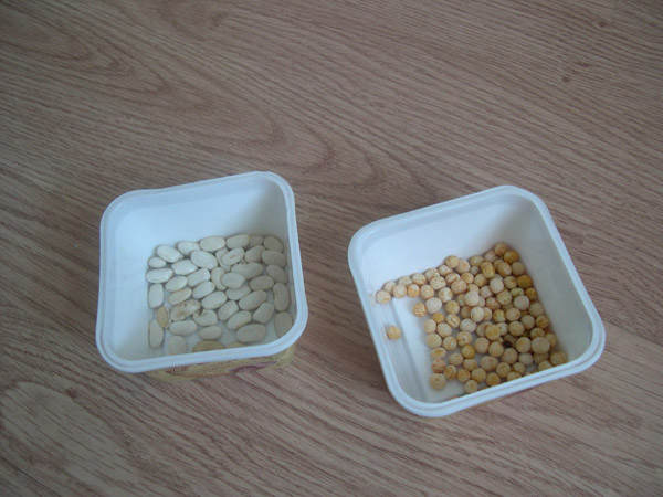 Tai klasikinis mažylių žaidimas – sumaišytas kruopas išrūšiuoti į atskirus indelius. Jei vaikas bus per mažas šiam susikaupimo reikalaujančiam žaidimui, jis paprasčiausiai su žirniais ir pupelėmis pažais kitaip, nei tikitės, tad verta vėl pabandyti bent po poros savaičių.