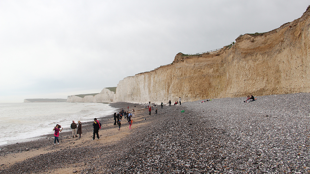 Kitą dieną išsiruošėme automobiliu į Anglijos pietinę pakrantę, pažiūrėti Septynių Seserų uolų. Į vieną pusę kelionė truko apie 2 valandas. Tad Matas valandėlę dairėsi pro langelius, valandėlę pamiegojo. Ir vėl gelbėjo krepšiai, pilni užkandžių bei žaislų. Pasigrožėję nuostabiu peizažu, užsukome į vieną didžiausių kurortinių miestelių Anglijoje – Brighton.