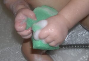 Maždaug iki 8 mėn. didžiausias dėmesys skiriamas pojūčiams: duodama daug liesti, čiupinėti, o jau nuo 8 mėn. reikalingi veiksmo žaislai, kuriuos galima dėlioti, traukti, spausti, verti, mesti, kišti.