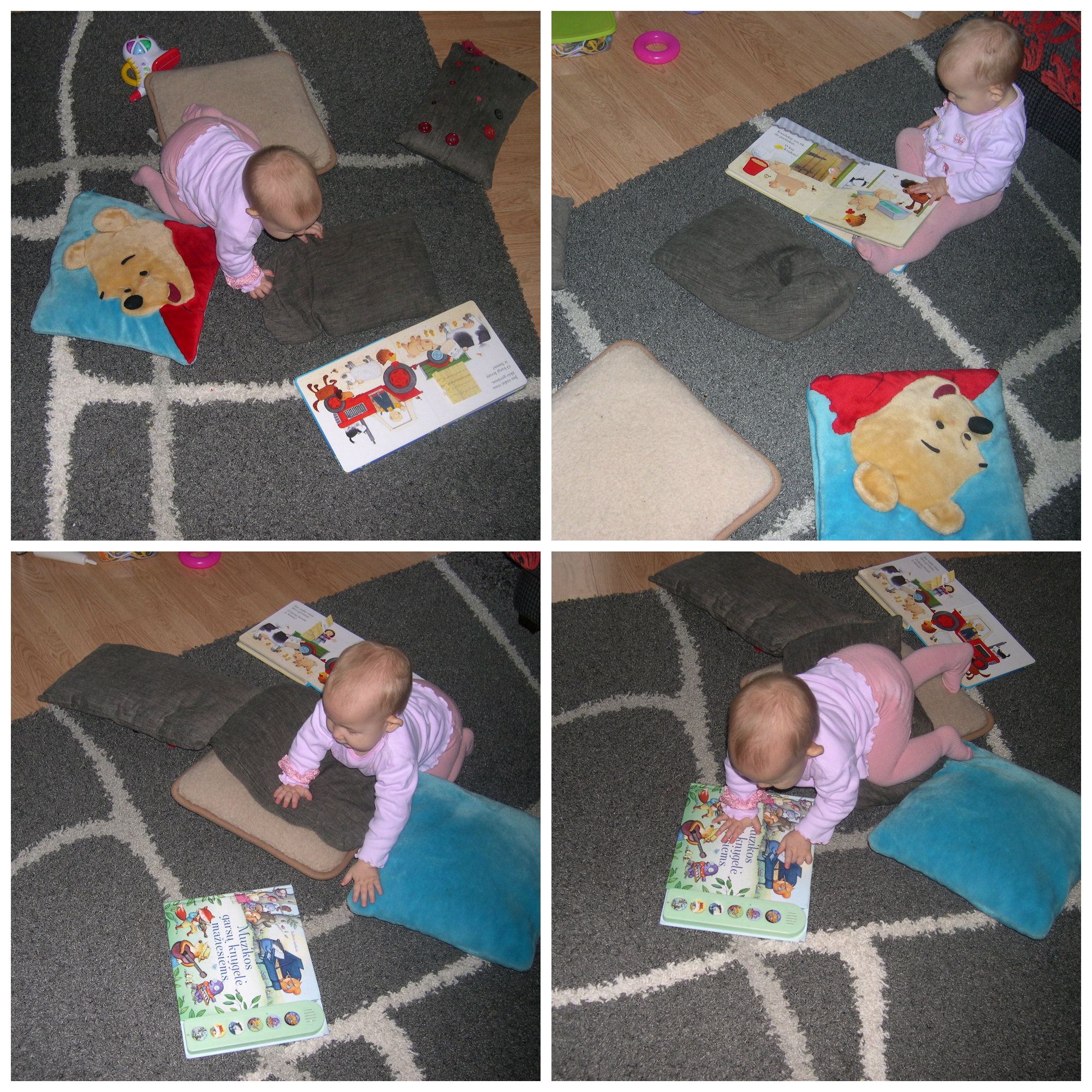 - Kelias su kliūtimis, kuriomis gali tapti pagalvėlės, dėžės, pakylos. Priešais geidžiamą daiktą padėkite pagalvėlių, kurias turi įveikti.