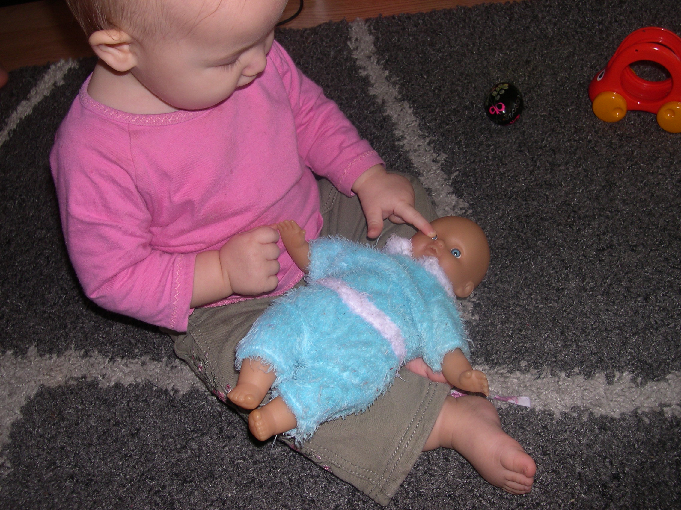 Į žaidimus įtraukite veidrodį „savojo aš” pažinimui. Prieš veidrodį mojuokite, rodykite, šypsokitės, verkite. Laikant kūdikį ant rankų, artėkite prie veidrodžio, tolkite. Klauskite: „kur mama”, „kur Gabrielė (vaiko vardas)”? Atsakykite: čia mama (rodydama į save).