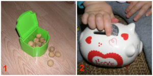 - Taupyklė ir centai (taupyklių yra įvairių, į vienas lengviau pataikyti, į kitas – sunkiau).