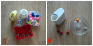- Buteliukai ir stikliniai rutuliukai, pūkučiai.