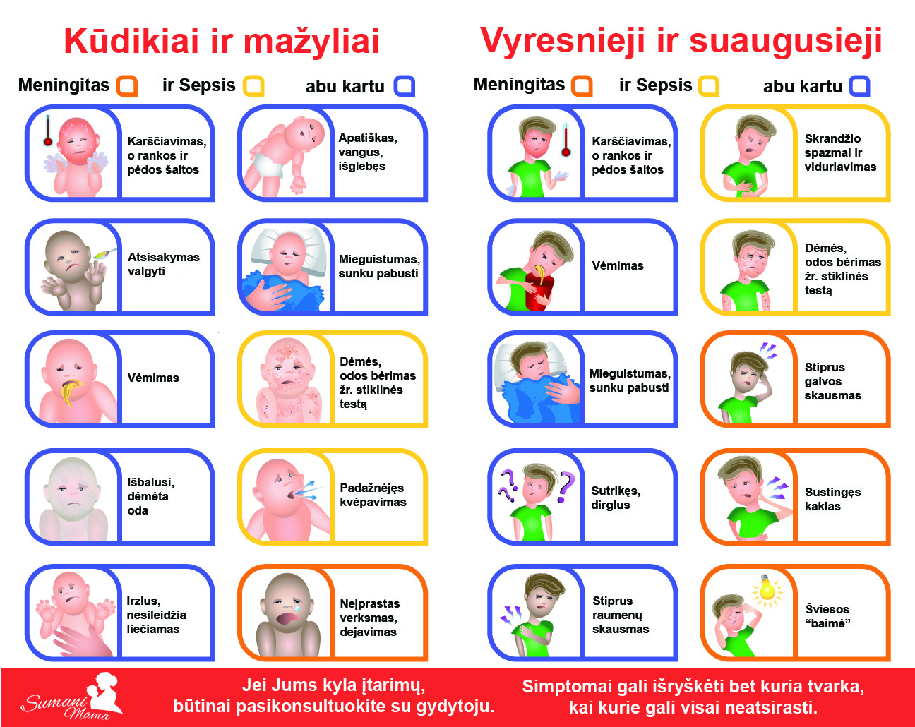 Atminkite: Meningokokinė infekcija yra reta, bet labai pavojinga. Žinodami jos simptomus ir nedelsdami kreipdamiesi pagalbos, galite išgelbėti gyvybę. Efektyviausia apsauga – skiepai pagal rekomenduojamą kalendorių.