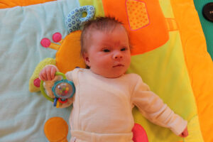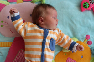 Pirmojo mėnesio pabaigoje kūdikis turėtų gebėti atlikti šiuos pagrindinius psichomotorinės raidos įgūdžius:
