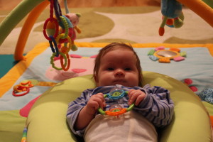 Antrojo mėnesio pabaigoje kūdikis turėtų gebėti atlikti šiuos pagrindinius psichomotorinės raidos įgūdžius: