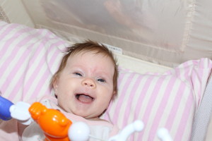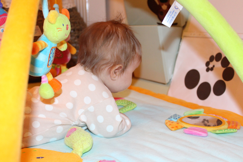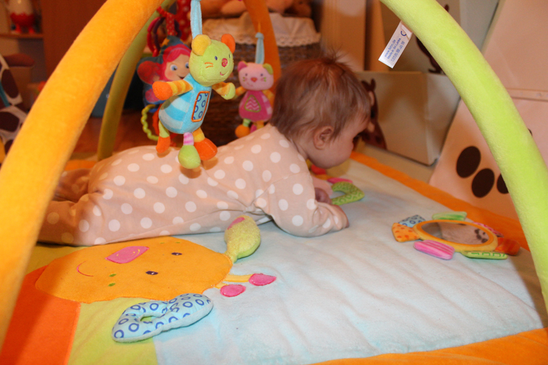 • Į ranką įdėtą barškutį suspaudžia (dėl griebimo reflekso), tačiau dar neišlaiko.
