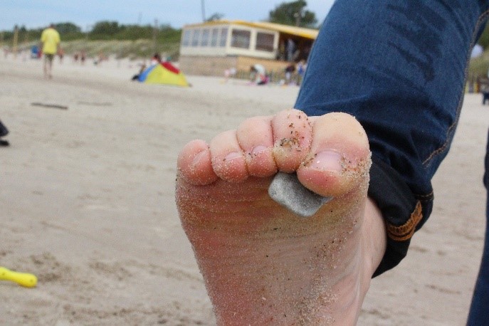 - Suimti su kojų pirštais akmenuką, pieštuką, pagaliuką, lego kaladėlę ir pakelti pėdą nuo žemės išlaikant su kojos pirštais keliamą daiktą.