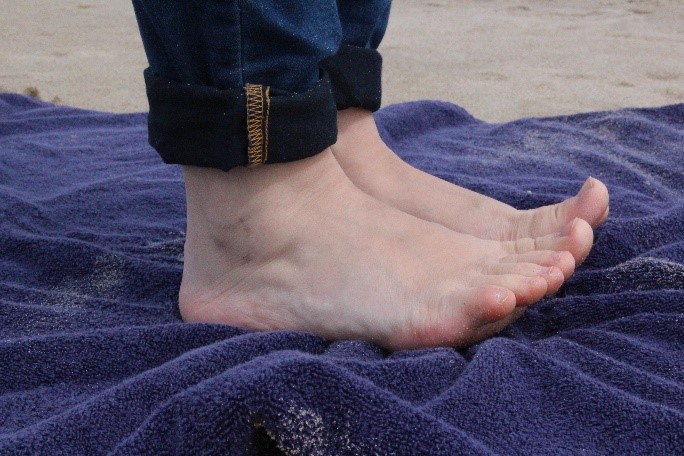 3. Pakelti abiejų kojų pirštus, sulenkti ir gniaužyti rankšluostį ar audinio skiautę.