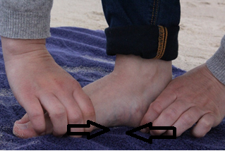 5. Jei nepavyksta sąmoningai įtempti ir pakelti vidinio pėdos skliauto, tuomet specialistui padedant pasyviai sustumiamas pėdos skliautas. Kai jau suvokiate, kaip reikia įtempti pado raumenis, kad kiltų pėdos skliautas aukštyn, pereikite prie sekančio pratimo.