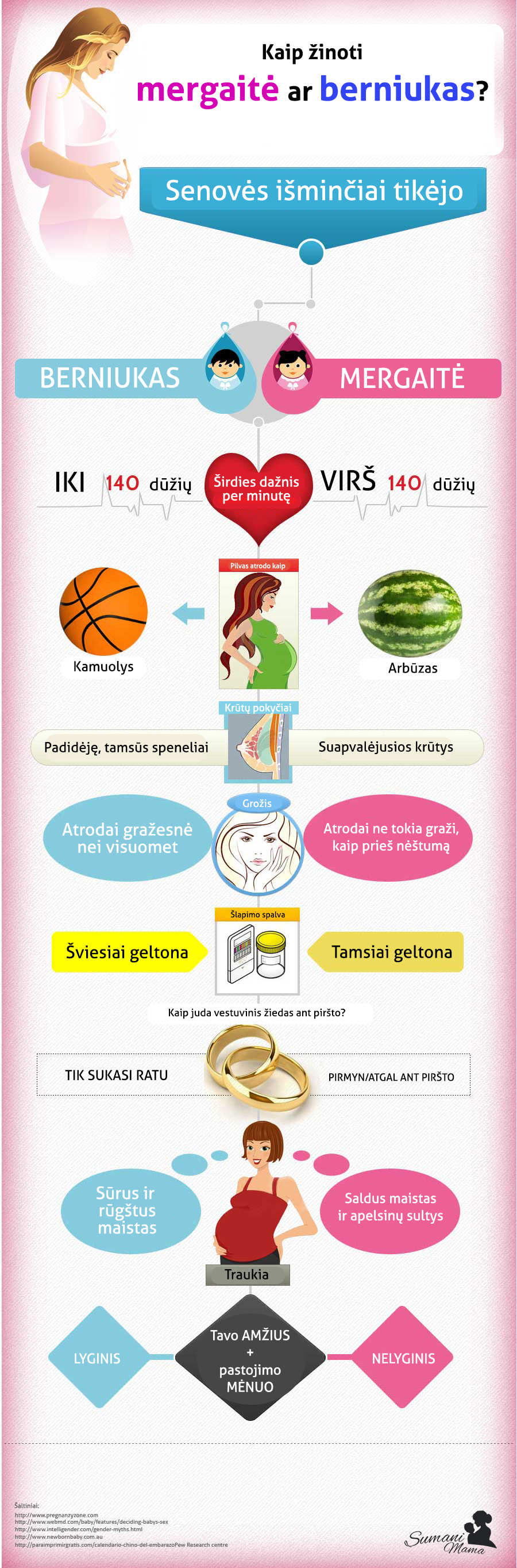 Vienas didžiausių džiaugsmų ir kartu didžiausia paslaptis nėštumo metu – kas gi gyvena po mamos širdimi: mergaitė ar berniukas? Šis klausimas nuo senų senovės nedavė ramybės būsimiems tėvams, giminaičiams ir kaimynams. Nesant šiuolaikinių technologijų, žmonės bandė įminti šią mįslę pasitelkdami įvairiausius stebėjimus ir spėjimus, kurie virto „senolių išmintimi“ ar tiesiog smagiais prietarais.