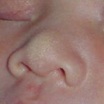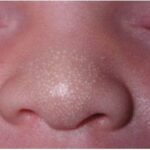 - Milia – baltus taškiukus ant nosytės, smakriuko. Tai riebalinių liaukų išskyros.