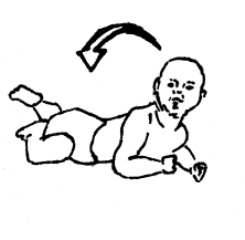 6 mėn. 2.1. Verčiasi nuo nugaros ant pilvo. Vaikas, gulėdamas ant nugaros, visiškai arba dalinai apsiverčia  ant pilvo. image007