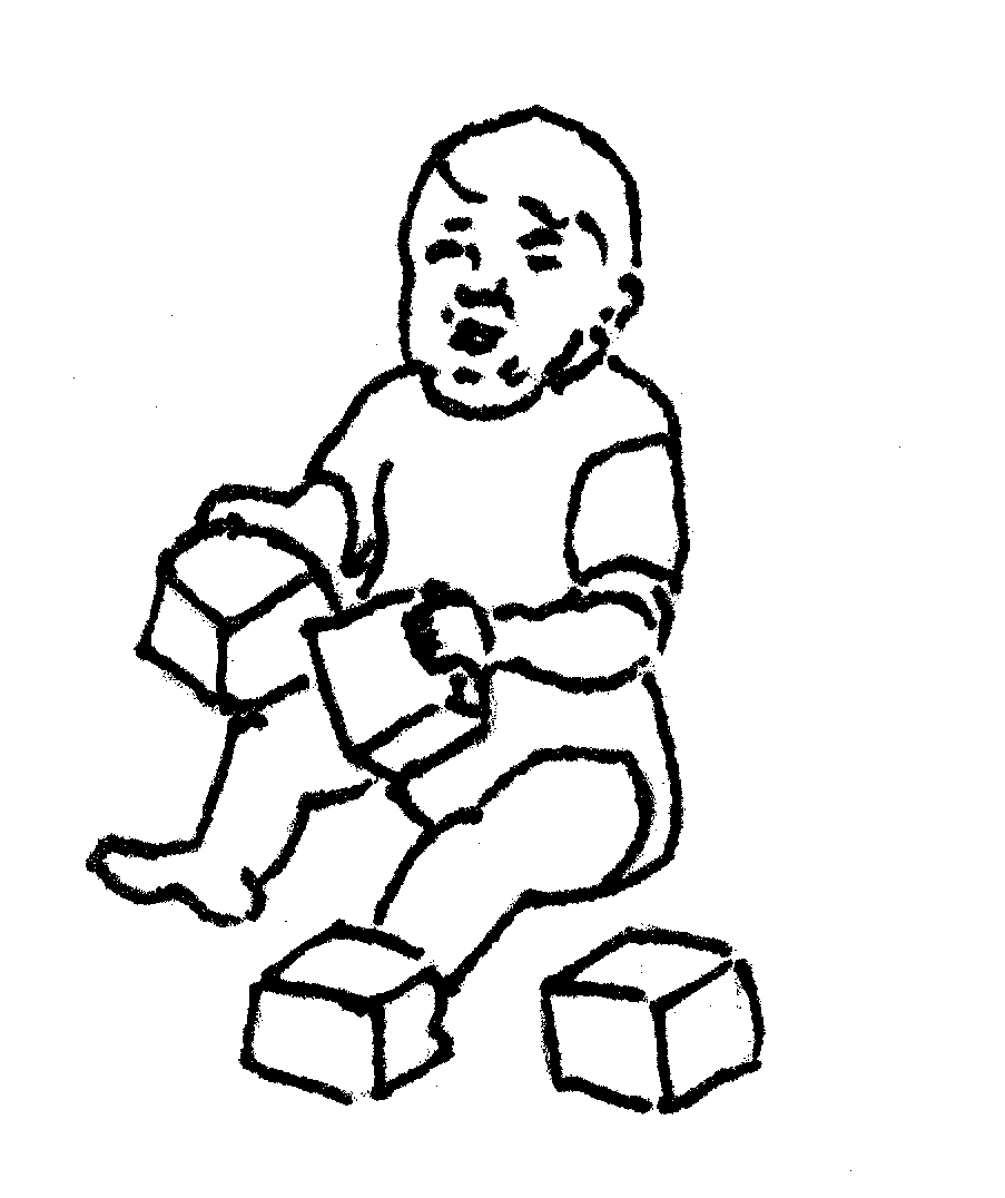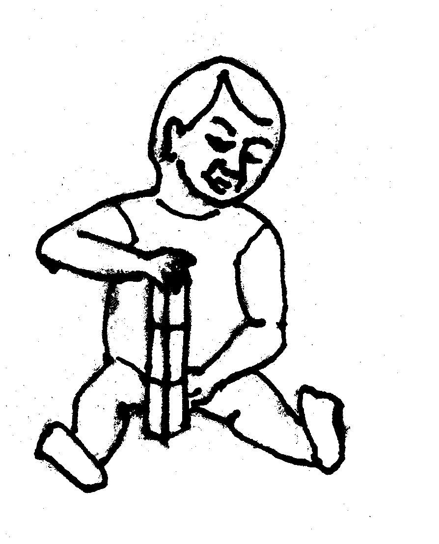 2.2. Tikslingai paima paduotą žaislą. Vaikas, gulėdamas ant nugaros arba sėdėdamas mamai ant kelių, paima duodamą kaladėlę. image009